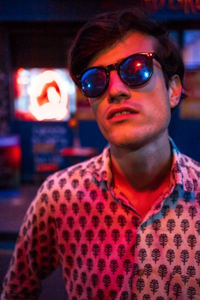 In this shot the neon signs from a shop window are the light source. The shot was taken at dusk, so more light was needed to create the shot. The coloured neon lights give enough light and the colour gives atmosphere.